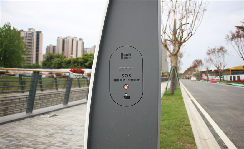 華體為業主方定制的這兩款智慧路燈,還在每個路口和重要路段配置有“一鍵報警”按鈕,這也是華體為園區打造的平安園區應用場景。