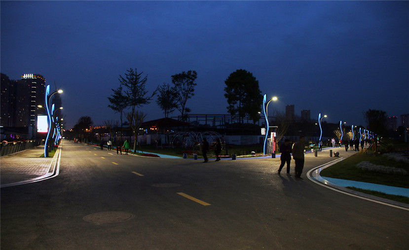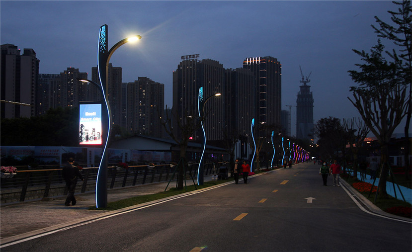 在改造升級過程中,四川華體照明科技股份有限公司(股票簡稱:華體科技 股票代碼:603679)為花鄉農居提供了“流光”、“山水閣”兩款智慧路燈,安裝在園區四條道路上。